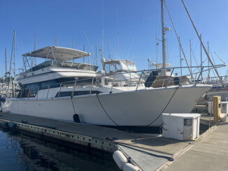 48′ MIKELSON 1990 SPORTFISHER: Tom Fexas performance design. Twin 375hp Caterpillar diesels w/2700 hours. 20 knot cruise. Onan 8KW generator. Spacious two stateroom interior. Dual flybridge helms. LLC titled. Ask $199,500. Call Richard 310 430-1769 bkr.