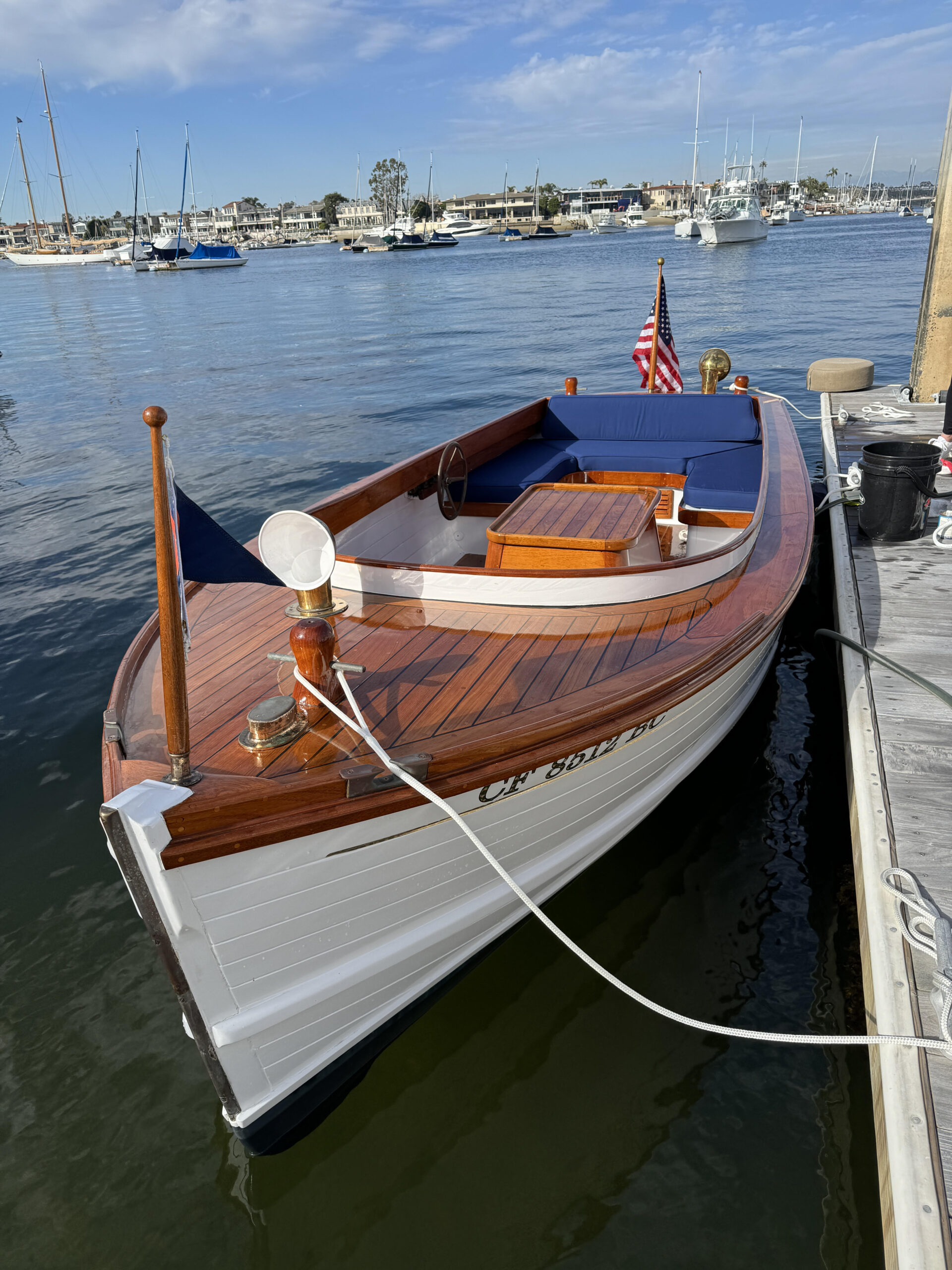 1947 Western Built Navy Captains Launch. 3 cylinder Perkins diesel. Runs good. Right hand side steering. Glass bottom. Good condition. Awlgrip paint and clear. Wiring and plumbing redone. Kept in Lido Dry Stack. Need new owner, don’t have time to use it, kid coming.