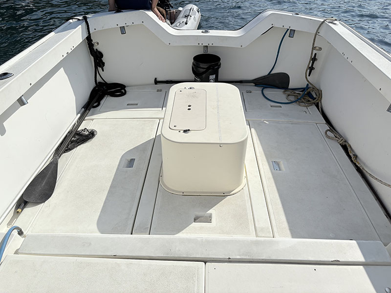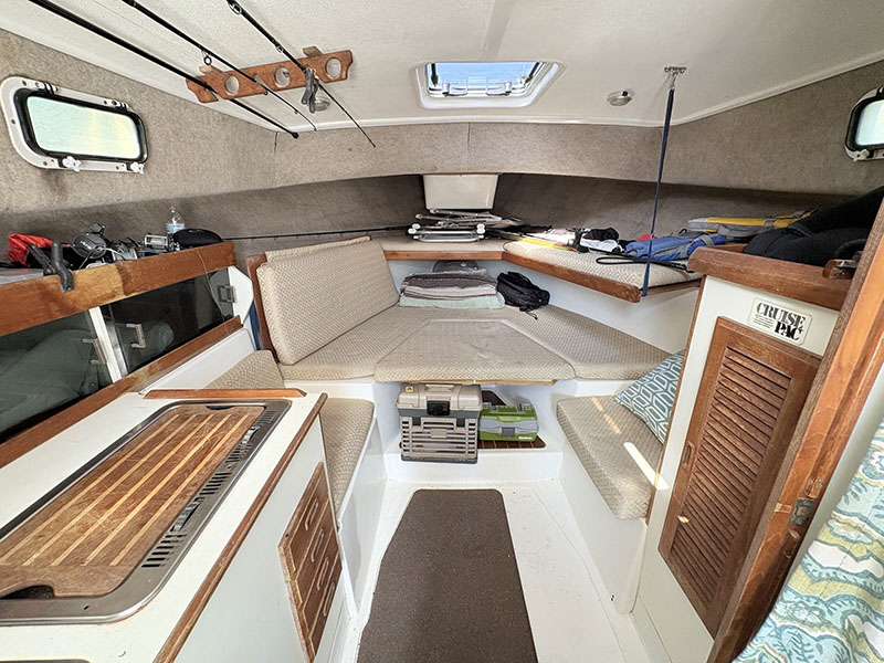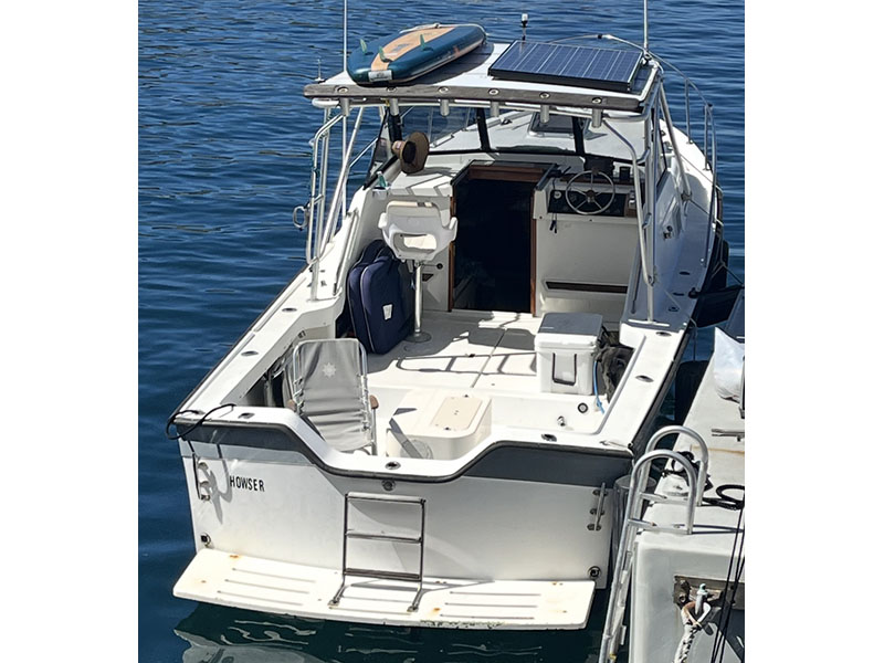 30′ ALURA 1987: Downeast profile, spacious deck, great for fishing or diving. Marine Power 5.7L gas, with direct drive, solar panel, galley w/stove, head, v-berth, custom stainless fairlead, compass, chart plotter/fish finder, rocket launchers, fish holds & bait tank.