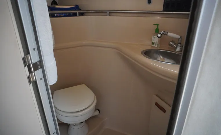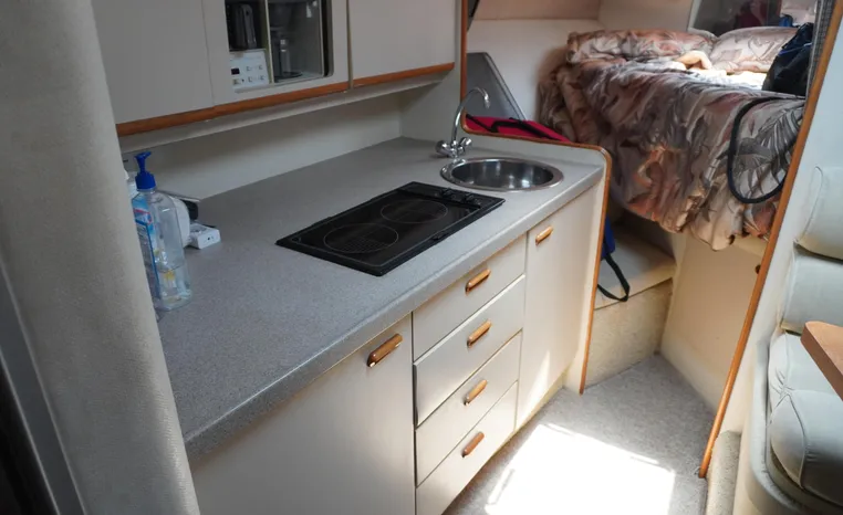 Twin MerCruisers. Roomy accommodations. A solid performance hull. Recent motor work, new electronics, windlass, solar panels, rear davit. $27,500.