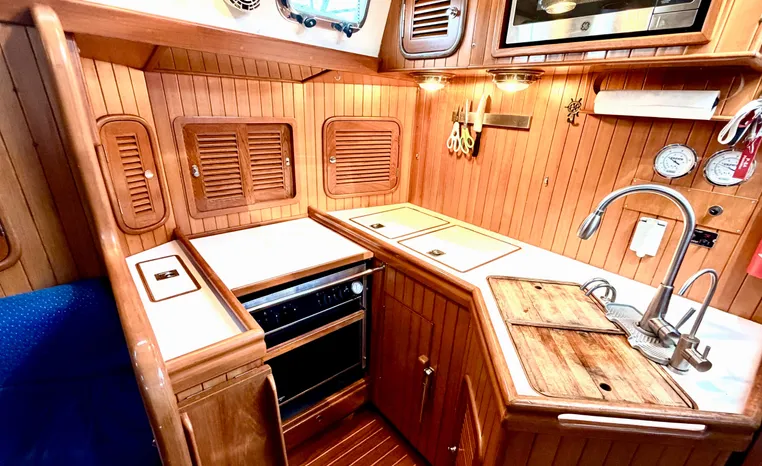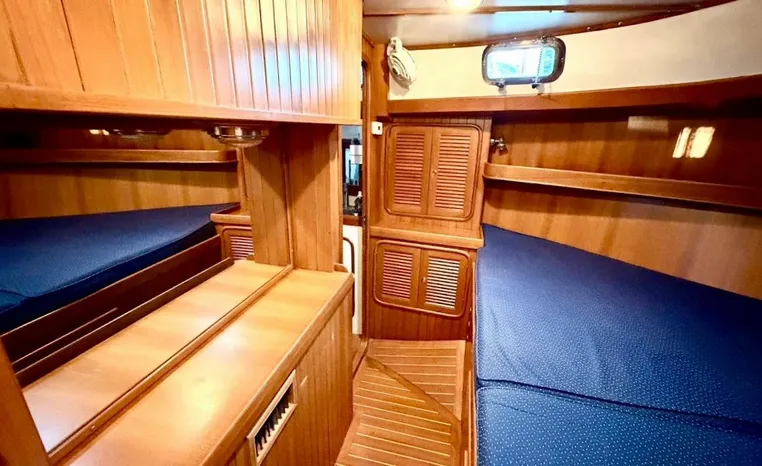 Robust construction and traditional double-ended styling with a contemporary underwater profile. Fin keel and skeg-hung rudder provide an easy-driven and seakindly hull.$150,000.