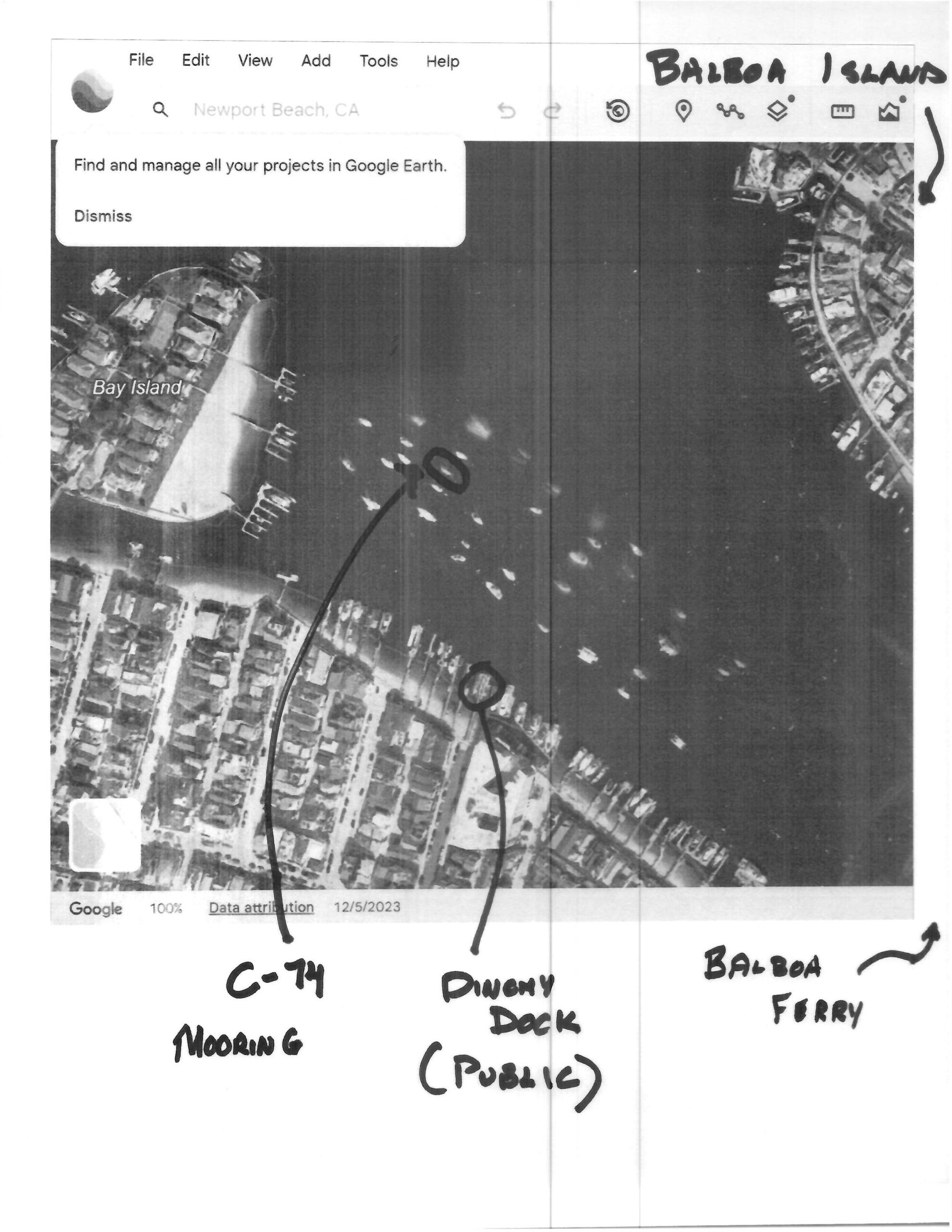 50′ MOORING IN THE C FIELD (C-74), located in lee of Bay Island. Close to shore, public dinghy dock and Balboa ferry. Recently overhauled.